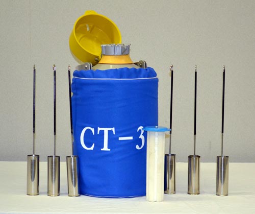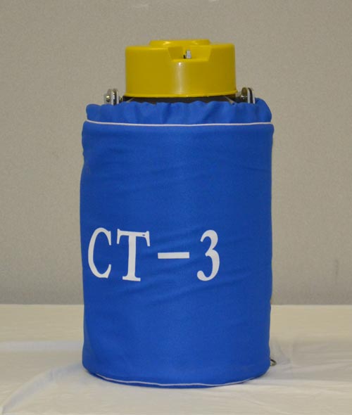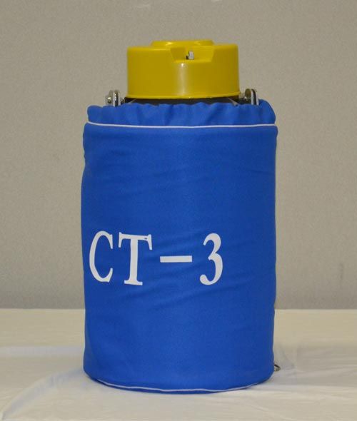 The low cost CT-3 tank is small and light in weight. It's great for short term storage of small amounts of product. It's also great for storing small amounts of liquid nitrogen. Because of it's small size, the canisters are shorter than in our other tanks. If you use canes they have to be bundled together to keep them from spreading out and becoming very difficult to get though the mouth of the tank. It's padded insulated cover protects tank and reduces liquid nitrogen loss. Also included are 6 canisters.