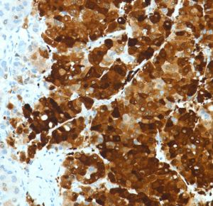 Arginase-1 (ARG1) catalyzes the hydrolysis of L-arginine into ornithine and urea, a critical step for the urea cycle. Defects in ARG1 are the cause of argininemia, an autosomal recessive disorder characterized by hyperammonemia. There are several isoforms of mammalian arginase. The type I isoform, is a cytosolic enzyme and expressed predominantly in the liver as a component of the urea cycle. Hepatocellular carcinoma usually shows higher protein expression of ARG1 than normal liver cells.