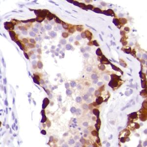 Melanoma-associated antigen 1 (MAGE-A1) is one of the melanoma associated antigens (MAAs). MAGE-A1 is highly expressed in testis and some human solid tumors such as melanoma, brain tumors of glial origin, neuroblastoma, non-small cell lung cancer, breast, gastric, colorectal, ovarian and renal cell carcinomas.