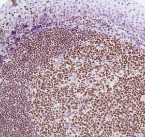 DNA-binding protein IKAROS functions in the specification and the maturation of the T lymphocyte. It also interacts with a critical control element in the terminal deoxynucleotidyl transferase promoter as well as with the promoters for other genes expressed during early stages of B-cell and T-cell development