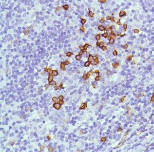 CD38 (cluster of differentiation 38), also known as cyclic ADP ribose hydrolase, is a transmembrane glycoprotein found on the surface of some immune cells including plasma cells, activated or immature T and B cells, monocytes, and natural killer cells. CD38 participates in cell adhesion, signal transduction and calcium signaling. It is expressed at high levels in the plasma cell tumor, prostate cancer, stomach cancer, and neuroblastoma. CD38 is used as one of the plasma cell markers and its ligand is CD31 molecules.