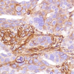 B7-H3 (also known as CD276) (Clone SP265) is a membrane protein that participates in the regulation of T-cellmediated immune response. B7-H3 can activate both acquired and innate immunity leading to natural killer cell and CD8 T-cell dependent killing of tumor cells. High levels of B7-H3 are seen in antigen presenting cells, some tumor cells, and tumor vasculature. It is the target of anticancer immunotherapy.