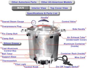 The All American Electric Sterilizer 75X-120V is a complete, self-contained unit with an immersion heating element, automatic thermostatic control, automatic release valve, and pilot light. It connects to any outlet, is ready for use instantly, and ensures complete, efficient sterilization. Only All American Sterilizers feature an exclusive, precision machined "Metal-to-Metal" sealing system. Positive action clamping locks align the cover to the base forming a steam tight seal. Because no gasket is involved, the cover is always easily opened and closed.
