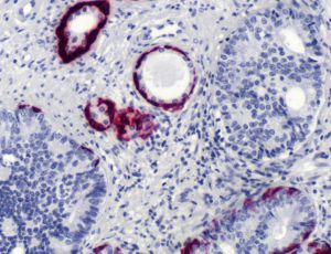 Twenty human keratins are divided into acidic (pI <5.7) and basic (pI >6.0) subfamilies. Members of the acidic and basic subfamilies are found together in pairs. The composition of keratin pairs varies with the epithelial cell type, stage of differentiation, cellular growth environment, and disease state. Many studies have shown the usefulness of keratins as markers in cancer research and tumor identification. Point mutations in cytokeratin 5 gene can cause various types of epidermolysis bullosa simplex. It is expressed in most epithelial and biphasic mesotheliomas.