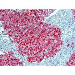 Recombinant protein according to the human Melanosom Specificity: Melanosome Incubation Time: 60 min Substrate/Buffer: Mouse monoclonal antibody from cell culture supernatant in PBS with carrier protein and preservative for stabilisation. Technical Specifications: This antibody is designed for the specific localisation of the melanocytic differentiation antigen (MART-1 or Melan A) in formalin-fixed, paraffin-embedded tissue sections. Pre-treatment: Heat Induced Epitope Retrieval in Citrate Buffer pH 6.0- Control tissue: Melanoma Protocol: IHC: 1:100-1:100